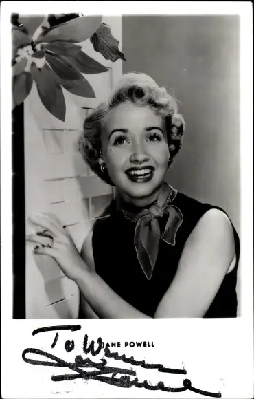 Ak Schauspielerin Jane Powell, Portrait, Blume, Autogramm