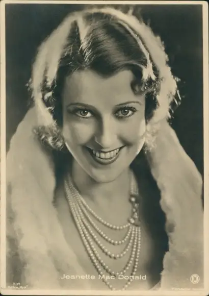 Ak Schauspielerin Jeanette Mac Donald, Portrait, Perlenkette, Pelz