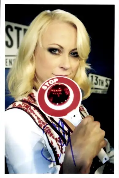 Ak Schauspielerin Jenny Elvers, Portrait, Polizeikelle, Stop, Autogramm