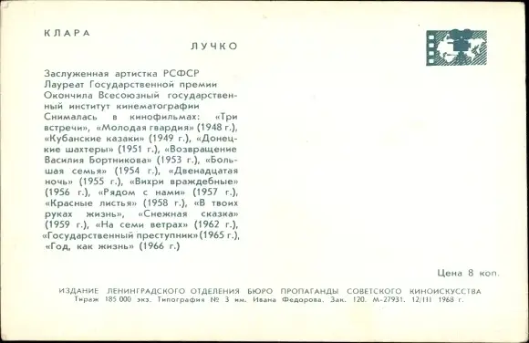 Ak Schauspielerin Klara Luchko, Portrait