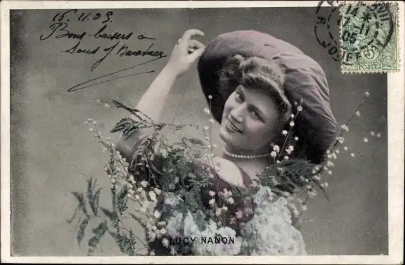 Ak Schauspielerin Lucy Nanon, Portrait mit Hut