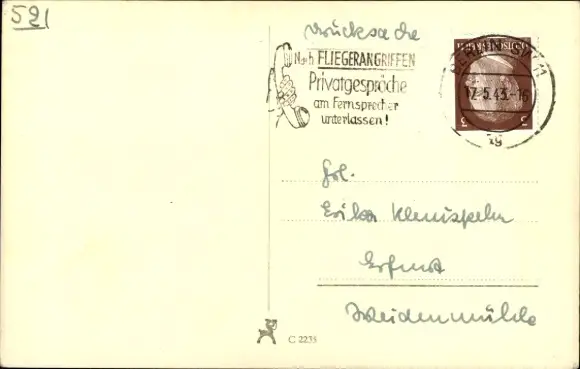 Zustand, siehe Scan, gelaufen, 1943 - ca 9 cm X 14 cm