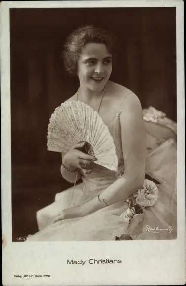 Ak Schauspielerin Mady Christians, Portrait mit Fächer
