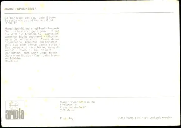 Ak Schauspielerin Margit Sonheimer, Portrait, Autogramm, Sängerin