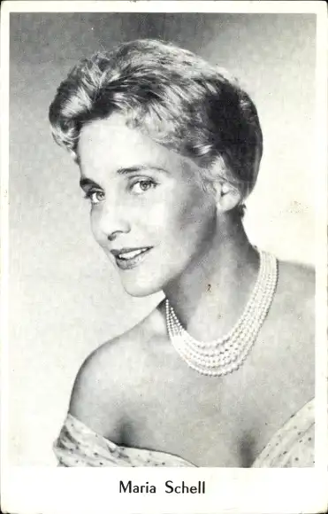 Ak Schauspielerin Maria Schell, Perlenkette, lächelnd