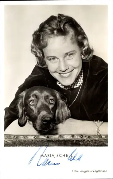 Ak Schauspielerin Maria Schell, Portrait, Hund, Autogramm