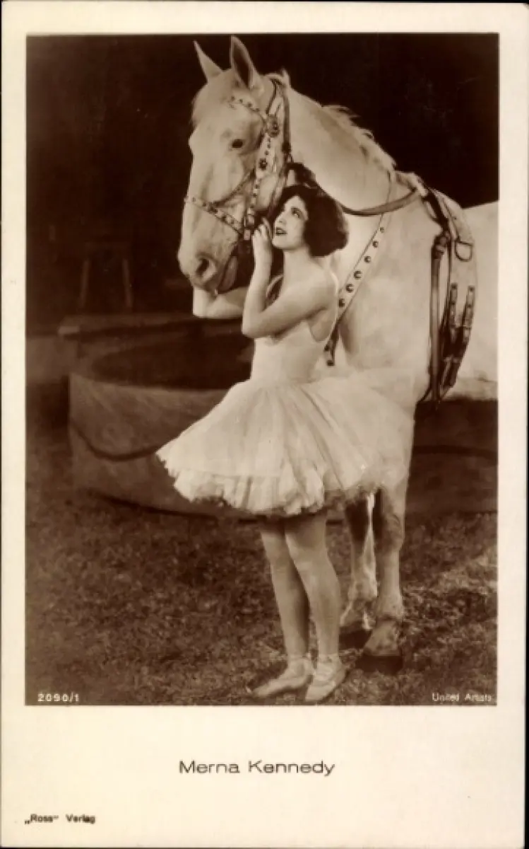 Ak Schauspielerin Merna Kennedy, Filmszene mit Pferd