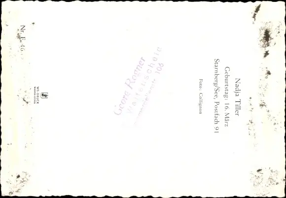 Ak Schauspielerin Nadja Tiller, Portrait, Autogramm
