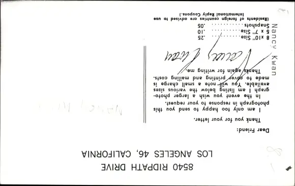 Ak Schauspielerin Nancy Kwan, Portrait, Autogramm
