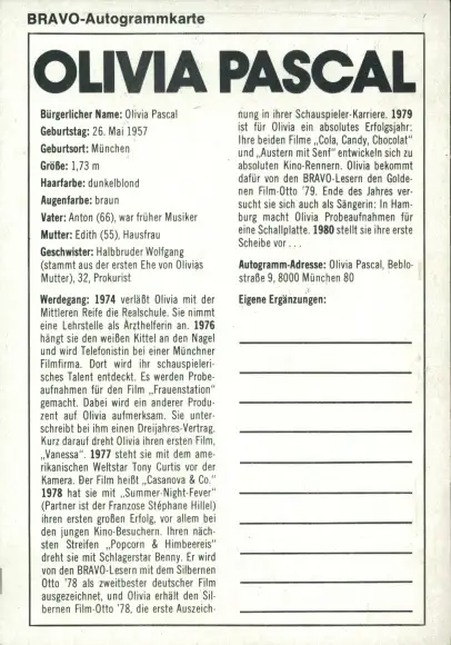 Ak Schauspielerin Olivia Pascal, Portrait, Autogramm
