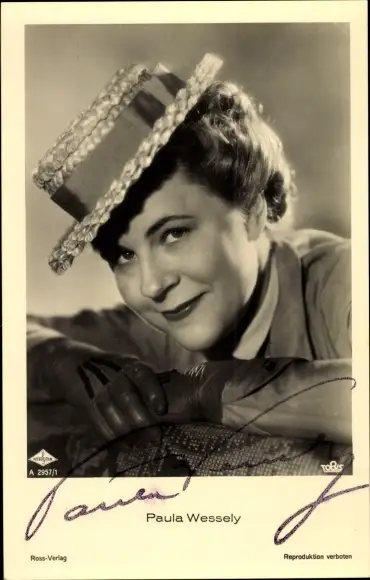 Ak Schauspielerin Paula Wessely, Portrait mit Hut, Handschuhe, Autogramm