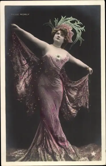 Ak Schauspielerin Paule Morly, Portrait im Kleid