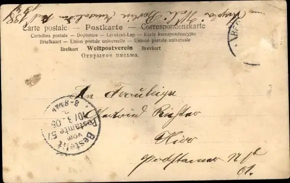 Zustand, siehe Scan, gelaufen, 1905 - ca 3 cm X 5 cm