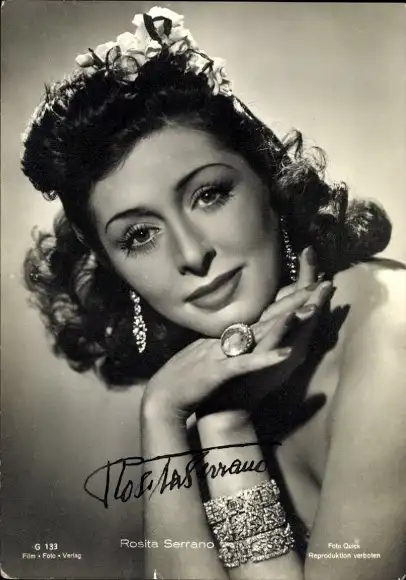 Ak Schauspielerin Rosita Serrano, Portrait, Schmuck, Autogramm