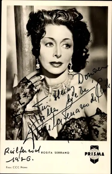 Ak Schauspielerin Rosita Serrano, Prisma Film, Schmuck, Halskette, Ohrringe, Autogramm