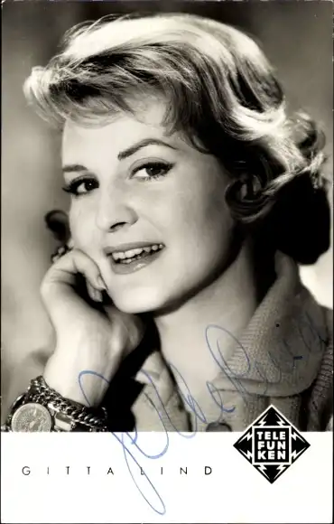 Ak Schauspielerin, Sängerin Gitta Lind, Portrait, Telefunken Schallplatten, Autogramm
