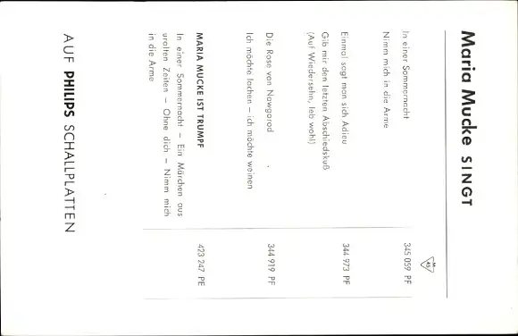 Ak Schauspielerin, Sängerin Maria Mucke, Portrait, Autogramm, Philips Schallplatten