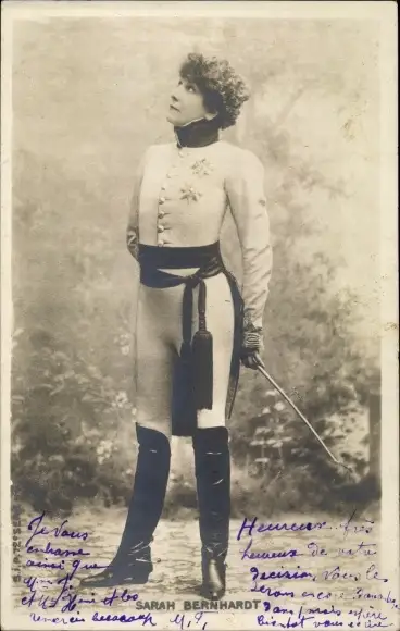 Ak Schauspielerin Sarah Bernhardt, Portrait in Uniform