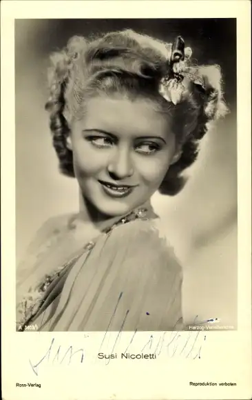 Ak Schauspielerin Susi Nicoletti, Portrait, Autogramm