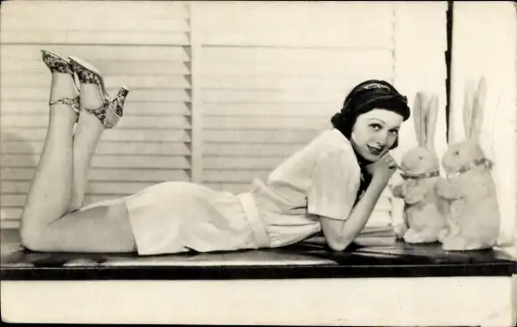 Ak Schauspielerin Terry Ray, Portrait, Plüschhasen