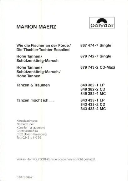 Ak Schauspielerin und Sängerin Marion Maerz, Potrait, Autogramm