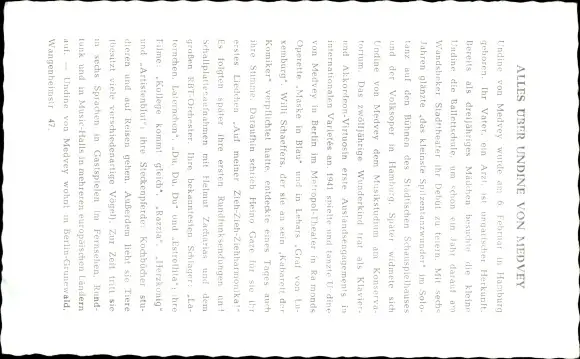Ak Schauspielerin und Sängerin Undine von Medvey, Portrait, Autogramm