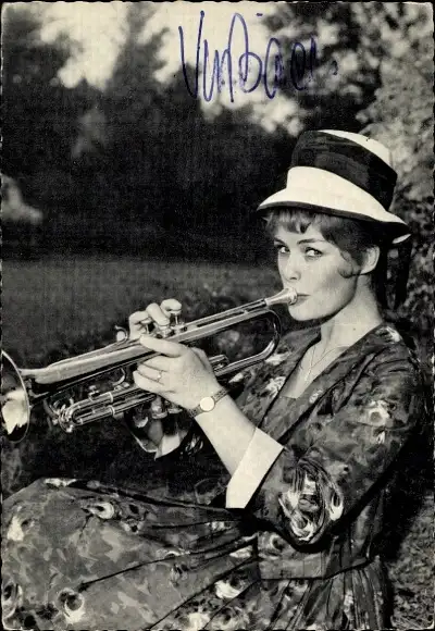 Ak Schauspielerin und Sängerin Vivi Bach, Trompete, Autogramm