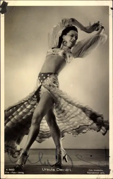 Ak Schauspielerin und Tänzerin Ursula Deinert, Portrait, tanzend, Autogramm