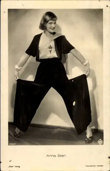 Ak Schauspielern Anna Sten, Standportrait, Weite Hosen
