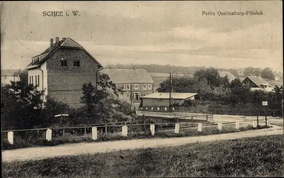Ak Schee Sprockhövel Nordrhein Westfalen, Partie Quellenburg Flüsloh