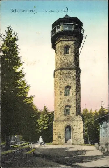 Ak Scheibenberg im Erzgebirge Sachsen, Königin Carola-Turm