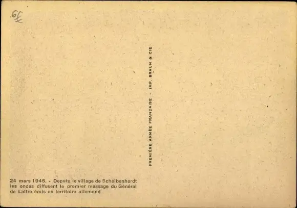 Ak Scheibenhardt in der Pfalz, 24 mars 1945, liberation, premier message du General de Lattre