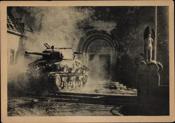 Ak Scheibenhardt in der Pfalz, Char francais, französischer Panzer in der Stadt 1945