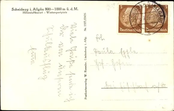 Zustand, siehe Scan, gelaufen, 1937 - ca 14 cm X 9 cm