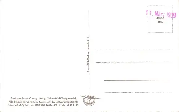 Ansichtskarte, Postkarte, Fliegeraufnahme, Luftbild, Luftaufnahme, Fliegerbild, Fliegerfoto