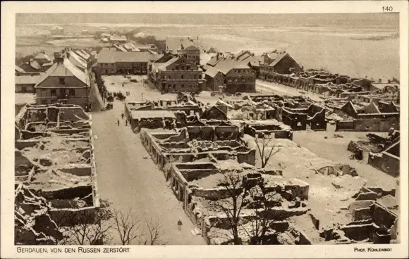 Ak Schelesnodoroschny Gerdauen Ostpreußen, Ort von den Russen zerstört, I WK