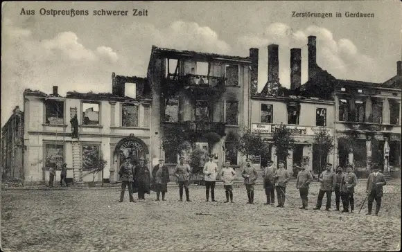 Ak Schelesnodoroschny Gerdauen Ostpreußen, Soldaten, Kriegszerstörung 1. WK