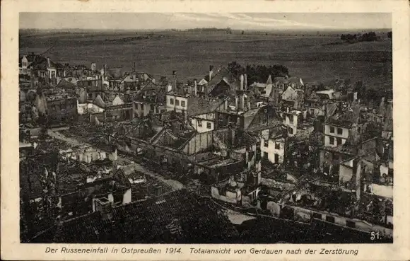Ak Schelesnodoroschny Gerdauen Ostpreußen, Totalansicht, Kriegszerstörungen