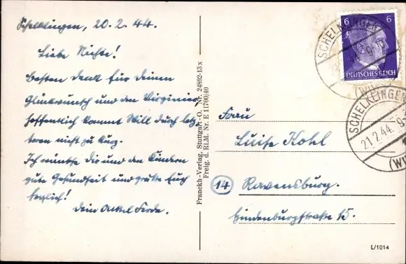 Zustand, siehe Scan, gelaufen, 1944 - ca 14 cm X 9 cm