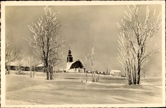 Ak Schellerhau Altenberg Osterzgebirge, Kirche von Osten, Winter