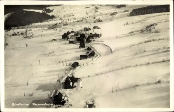Ak Schellerhau Altenberg im Erzgebirge, Fliegeraufnahme, Winter