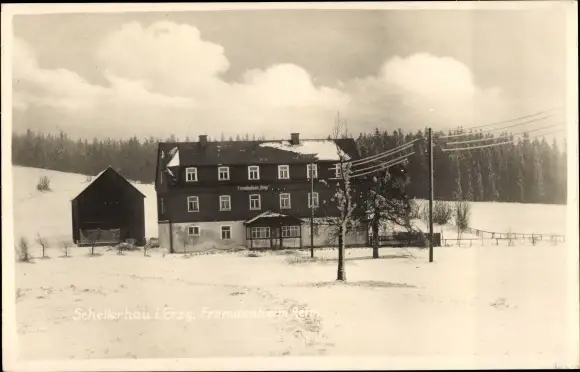 Ak Schellerhau Altenberg im Erzgebirge, Fremdenheim Rehn im Winter