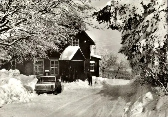 Ak Schellerhau Altenberg im Erzgebirge, Oberer Gasthof im Schnee