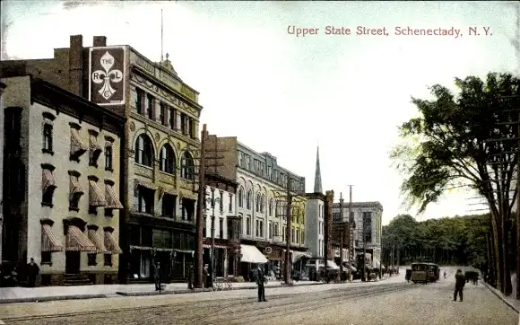 Ak Schenectady New York USA, Upper State Street, Straßenbahn