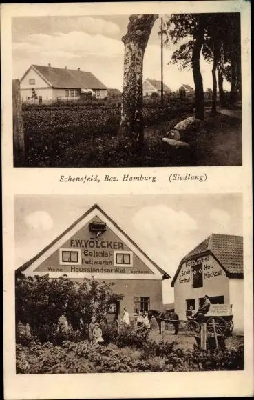 Ak Schenefeld in Holstein, Kolonialwarenhandlung, Siedlung
