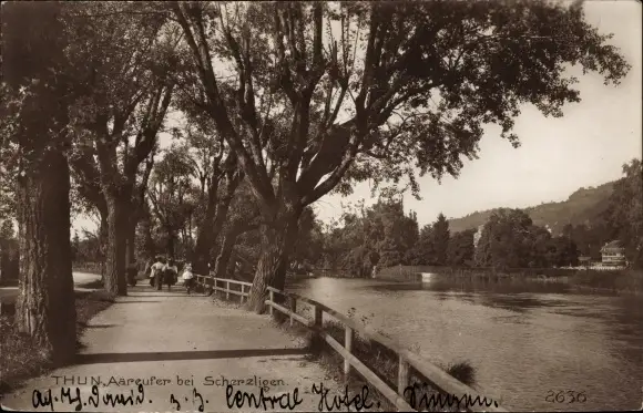 Ak Scherzligen Strättligen Thun Kt. Bern Schweiz, Partie am Aareufer