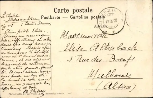 Zustand, siehe Scan, gelaufen, 1908 - ca 14 cm X 9 cm