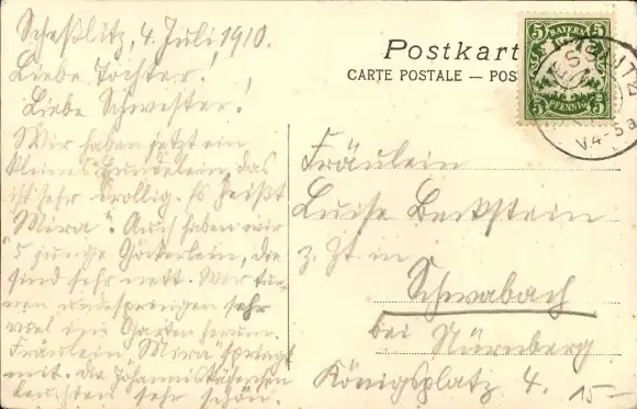 Zustand, siehe Scan, gelaufen, 1910 - ca 14 cm X 9 cm