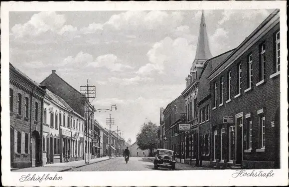 Ak Schiefbahn Willich am Niederrhein, Hochstraße, Kirchturm, Auto