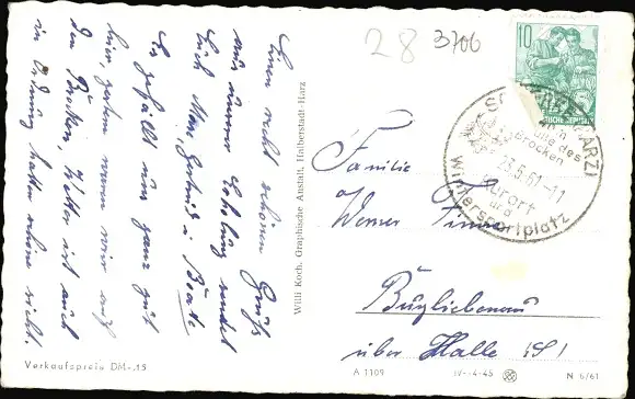 Zustand, siehe Scan, gelaufen, 1961 - ca 14 cm X 9 cm
